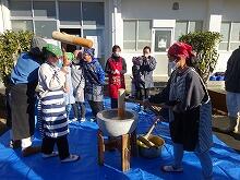 5年生が、6月20日(月)に田植えをし、10月20日(水)に稲刈りをしたもち米を学校近くにお住まいの佐野さんに脱穀・精米をしていただきました。そして、ついに1月25日(水)にもちつきをしました。5年生の保護者の方々や地域の「つくし会」の方々も招待してにぎやかにおこないました。
