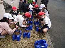 2月に入って、各学年で一人一鉢の準備を進めています。技術員の甲斐先生が心を込めて育てた花や今津地区の林田さんからいただいた花を大事に鉢に植え替えていきます。今頃の時期は、パンジーやビオラ、キンギョソウがきれいに咲いています。2月1日(水)は3年生のお友達が、技術員の甲斐先生の指導で、手際よく作業に取り組み、パンジーやビオラを鉢に植えていきました。