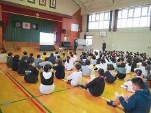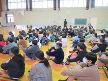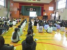 2月の全校朝会は、教務主任で理科専科の佐藤先生のお話でした。佐藤先生は、話の内容を分かりやすいプレゼン資料にまとめていました。そして、3つの質問で組み立てられており、みんなが自分自身のことを考えながら話の内容を理解することができるように工夫していました。