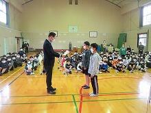 その後、「延岡ファイターズソフトボールクラブ」が延岡市の大会で優勝したので、表彰をしました。日頃から、仲間と協力して練習を頑張ってきた成果ですね。これからも、人づきあいを大切にしながら、活躍してほしいです。
