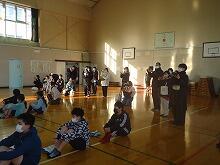 今年度の表現集会の「おおとり」は、やはり、成長著しい1年生です。2月17日(金)の表現集会当日は、1年生のお友達はいつもより早く登校しての”朝練“をしていました。朝早くに、体育館からかわいらしく元気のよいかけ声や歌声が響いてきます。そうしているうちに、楽しみにしてこの日を待っていた1年生のお家の方々が、続々とスマホやビデオカメラを手にして体育館に集まってきました。
