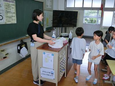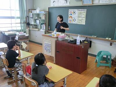授業後半ではゴミの分別の仕方について、カードを貼り分けながら学びました。どのゴミの仲間になるのか、なかなか分からず迷う物もありましたが、みんなで相談し合いながら考えることができましたね。今日教えていただいた「4R」をこれからもしっかりと守って、大切な資源や美しい環境を守っていってほしいです。