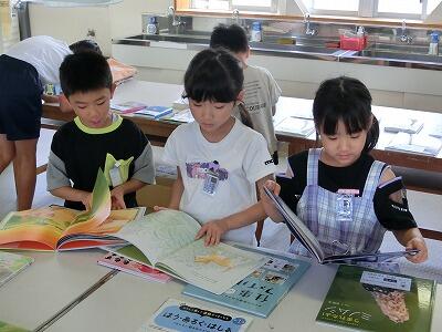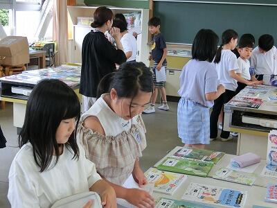 6月12日(水) 選書会を行いました。子どもたちが図書室において欲しい本を、自分たちで選んで投票する活動です。家庭科室のテーブルにずらりと並んだぴかぴかの本に子どもたちの目は釘付けになっていました。