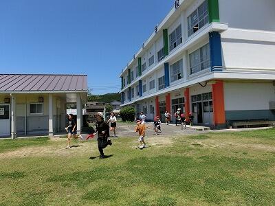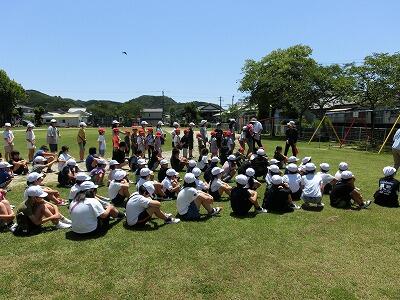 6月14日(金) 地震・津波を想定した避難訓練を行いました。緊急地震速報の放送が流れると、子どもたちは素早く机の下に潜り、身を守る行動をとることができました。その後の運動場への避難も「お(押さない)・は(走らない)・し(しゃべらない)・も(戻らない)」を守って、3分以内に完了させることができました。津波警報が発令された場合は、さらに祐国寺に逃げることになります。