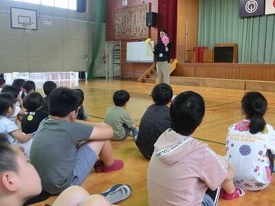 6月28日(金) 全校朝会を行いました。6月の目標をふり返った後、7月の目標について話がありました。7月の生活目標は「ろうかを正しく歩こう」です。来週から廊下中央に紙花を並べ、踏まないようにすることで正しい廊下歩行を身に付けます。正しい廊下歩行の合い言葉は「は・さ・み」です。走らない・さわがない・右側を歩く を守って、紙花をいつまでもきれいに咲かせることが出来るでしょうか? 廊下歩行の上手なお友達の発表も次の全校朝会で行われるので、たくさんのお友達が発表されることを期待しています。