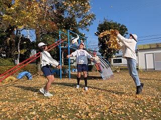 黄金のじゅうたんの上でねっころがったり、銀杏吹雪を降らせたり・・・。