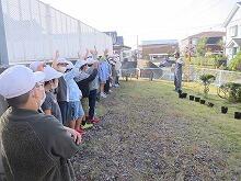 川島小学校みどりの少年団活動の一環として、11月4日(金)に学校に木を植えました。今年度は、6年生の29人で15本の紅葉の木をプールそばの空き地に植えました。