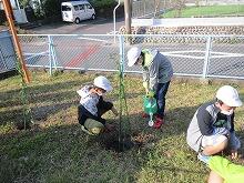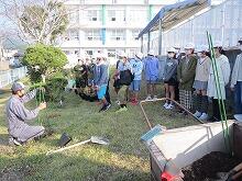 苗木の準備や植樹する場所の穴掘り、当日の指導を技術員の甲斐先生に進めていただきました。おかげで手際よく植樹ができました。