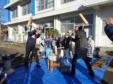 5年生が、6月20日(月)に田植えをし、10月20日(水)に稲刈りをしたもち米を学校近くにお住まいの佐野さんに脱穀・精米をしていただきました。そして、ついに1月25日(水)にもちつきをしました。5年生の保護者の方々や地域の「つくし会」の方々も招待してにぎやかにおこないました。