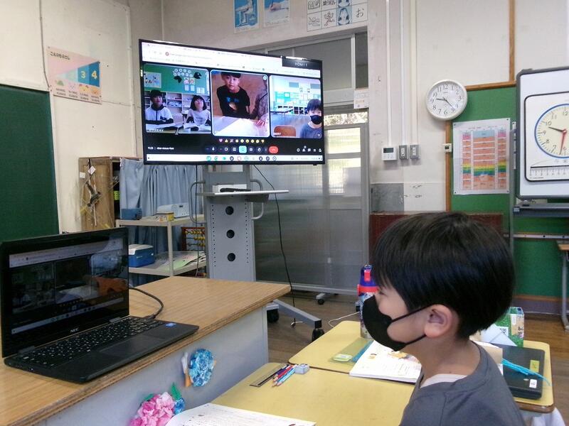12月15日、2年生が黒岩小と名水小のお友達と一緒にオンライン授業で学びました。国語の『そうだんにのってください』と『おもちゃの作り方をせつめいしよう』の学習です。