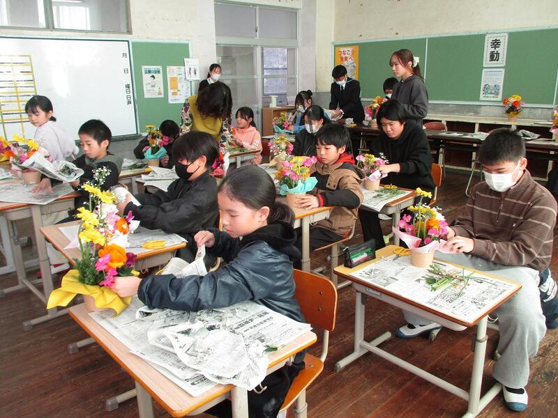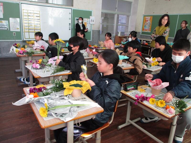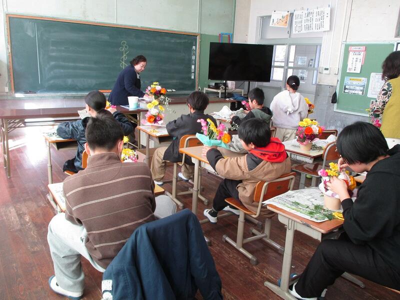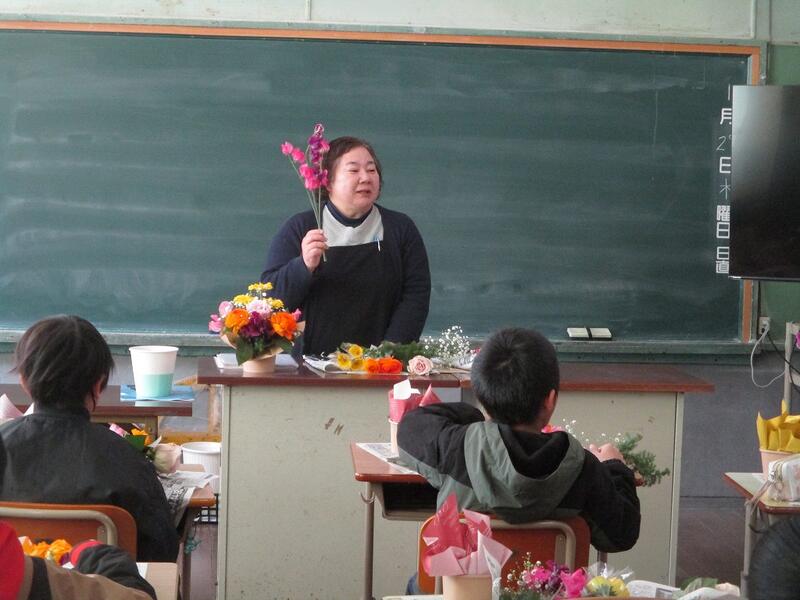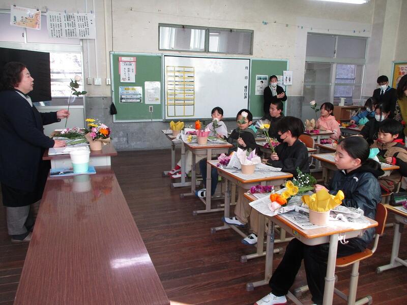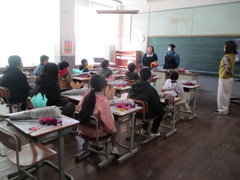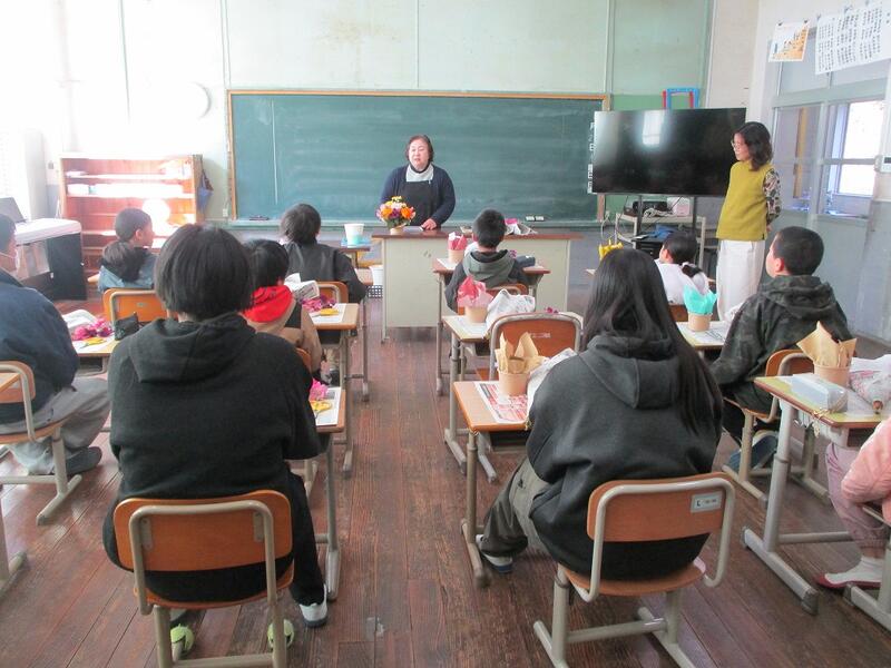 1月29日、岡田花店さんを講師にお迎えし、花育授業が行われました。花育とは、花や緑に親しみ、育てる機会を通して、やさしさや美しさを感じる気持ちを育むことです。