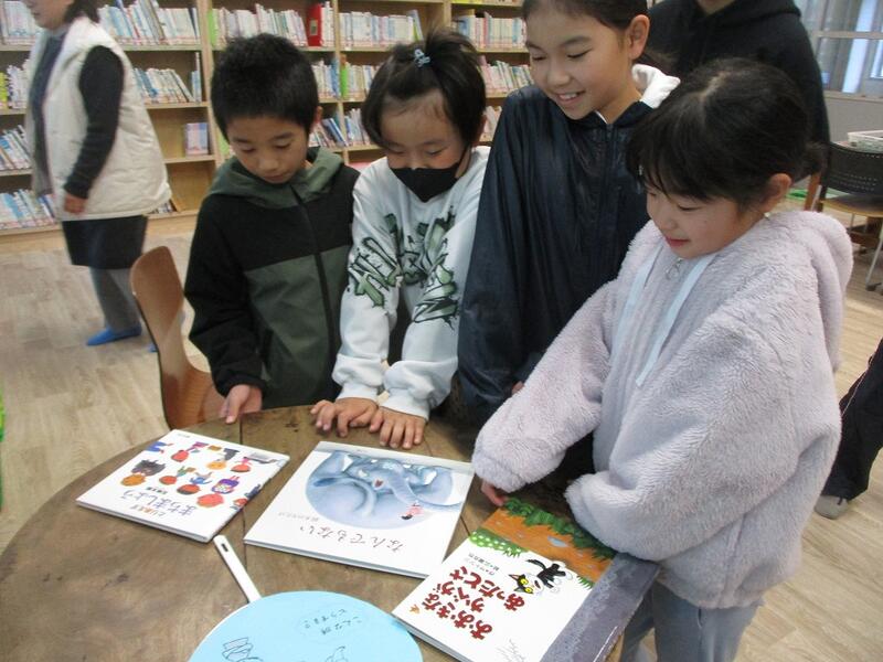 読み聞かせが終わった後、「どの絵本が一番好き?」など話しながら絵本の周りに集まっていました。