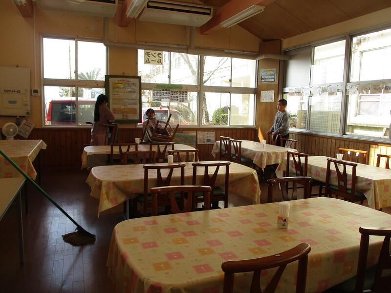 ★掃除の時間です。少ない人数ですが、曜日ごとに場所を決めて、役割分担して取り組んでいます。