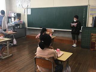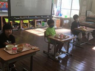 健康委員会のメンバーが各クラスをまわり、献立の説明や、よく噛んで食べましょうという話をしました。例年ならば、ランチルームで全校児童一緒に給食を食べますが、今年は新型コロナウイルス感染症予防のため、各クラスで別れて食べています。みんなで一緒に食べられる日が早く来ますようにと願っています。