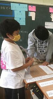 自分でできるけがの手当の方法という内容で授業を行いました。今までのけがを思い起こし、正しい手当の方法をみんなで話し合いながら学習しました。思っていたよりも、子どもたちが正しい手当の方法を知っていたので驚きでした。