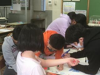 図書委員会は、新しい図書の整理を頑張っていました。健康委員会は、新型コロナウイルス感染症の予防のために、模造紙に手洗いの必要性についてまとめています。