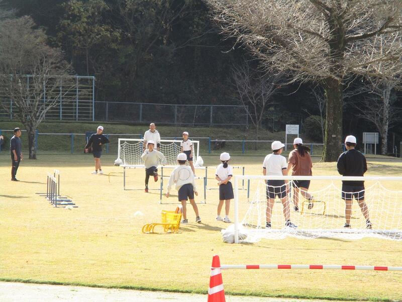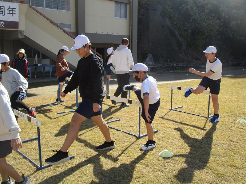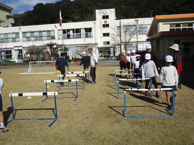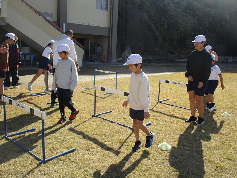 12月19日、今日の体育『陸上運動』も富島中学校の先生が指導してくださいました。子どもたちは、とても楽しみにしていました。体育で使う道具の準備を率先して行う姿も見られました。やる気を感じます!
