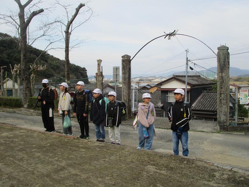 3月24日、6年生と一緒に登校するのは今日が最後でした。学校に着いたら、1列に並び校庭に向かって「おはようございます!」とあいさつをしている港っ子です。6年生のランドセル姿、最後の日になりそうです。6年間お世話になったランドセル、ありがとう!
