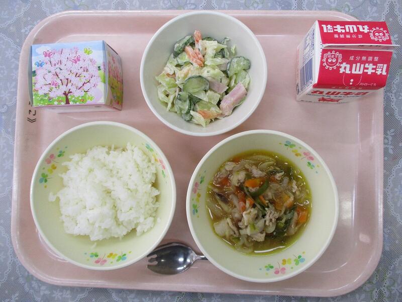 今日の給食は、『お祝いデザート(ロールケーキ)』がでました。メニューは、「ひむか豚丼、マカロニサラダ、ごはん、牛乳、デザート」でした。みんなで食べる最後の給食、おいしくいただいていました。