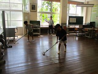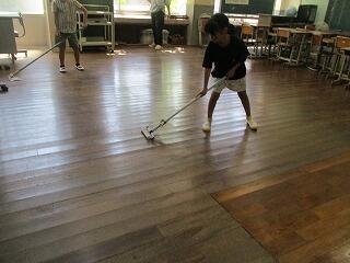 最後は、掃除の時間に、みんなで、ほうきで掃いてきれいにしました。
