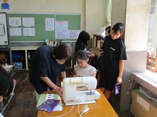 9月9日、5・6年の家庭科「ミシンで楽しくソーイング」の学習をしました。いつもお世話になっている地域の学校支援ボランティアの方においでいただき、ミシン縫いを教えてもらいました。5年生は、初めてのミシン縫いで戸惑いもありましたが、学校支援ボランティアの方と先生に丁寧に教えてもらって、上手に縫うことができていました。ありがとうございました。