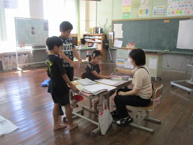 1・2年生は、音読劇で使う背景図の色ぬりをしていました。色を分担して、仲良く色ぬりをすることができていました。自分たちで作った背景図の前で、自信をもって劇の発表ができることでしょう!