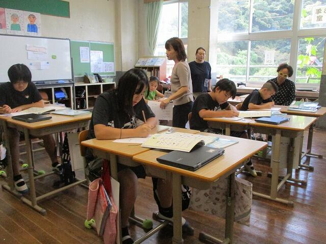 2年生は、かけ算の学習に入っています。元気な声で九九を唱えていました。やる気いっぱいです!1年生は、問題集に黙々と取り組みました。
