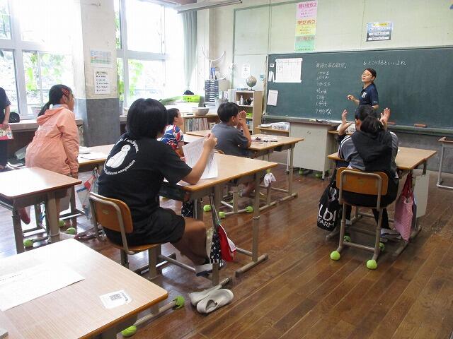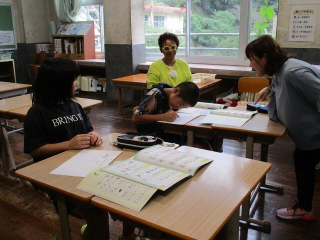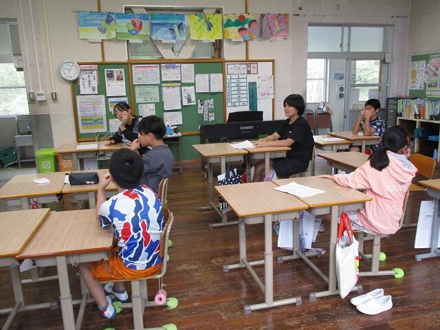 7月と9月に、旭小学校から小学校外国語教育実践加配教員の先生に来ていただきました。今日が、最後の授業でした。大変勉強になりました。ありがとうございました。