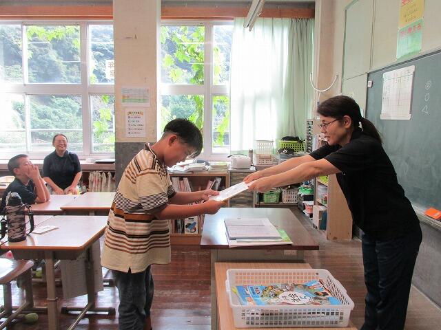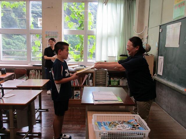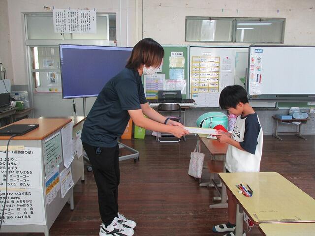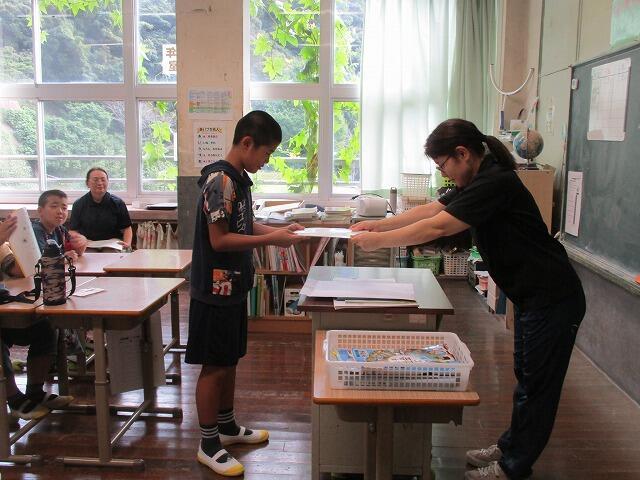 9月30日、今年度の折り返し地点です。今日は、通知票を配付しました。子どもたちが、4月~9月に、どのようなことに努力をしたのか、どのようなことができるようになったのか、どのような成長が見られたのか等、学習状況や活動の様子などが記載されています。子どもたちは、うれしそうな表情で担任の先生から通知票を受け取っていました。