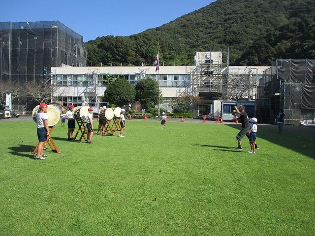 10月1日、港わんぱく太鼓の練習がありました。運動会に向けて最後の練習でした。本日も、雲海太鼓の平野さんご夫妻に丁寧にご指導いただきました。今日は、太鼓を運動場に出して、本番と同じように練習しました。子どもたちは、これまで以上に真剣な表情で力強く太鼓を叩いていました。元気なかけ声も、よかったです。しっかり仕上げの練習ができ、自信をもって本番を迎えることができそうです!