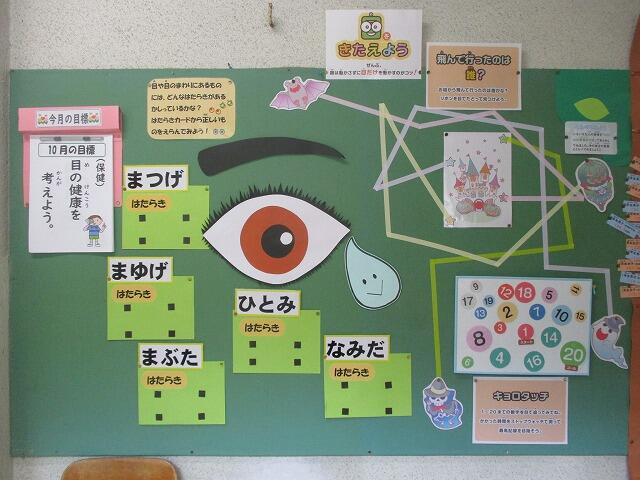 また、保健室前には、楽しくてためになる『目を大切にしようコーナー』ができています!