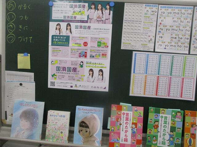 教室に『絵本コーナー』ができていました。思わず手にとって読みたくなる絵本がずらりと並んでいました。すてきな環境です!