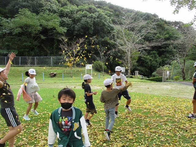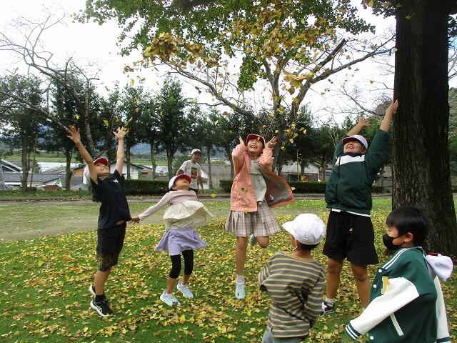 10月28日、涼しい秋らしい1日でした。運動場にある大きなイチョウの葉が少しずつ黄色に変わってきています。また、今朝は、たくさんの葉っぱが落ちていました。子どもたちは、さっそく、お昼休みにイチョウの葉っぱで仲良く遊んでいました。秋を楽しむことができたお昼休みでした。