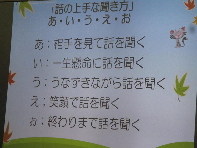 次に、『上手な聞き方 あいうえお』を教えていただいたり、あいづちについて考えたりして、上手な聞き方を学びました。そして、さっそく練習です!ペアになって話しました。とっても、気持ちよくお話をしたり、聞いたりできていました。カウンセラーの先生から、「聞き方 あいうえお を忘れないように、画用紙などに書いて貼っておくといいね!他の学年にも教えてね。」とアドバイスをもらった子どもたちでした。