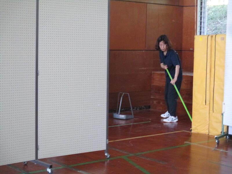 昨日は、先生たちが、会場である体育館の準備や掃除をしました。
