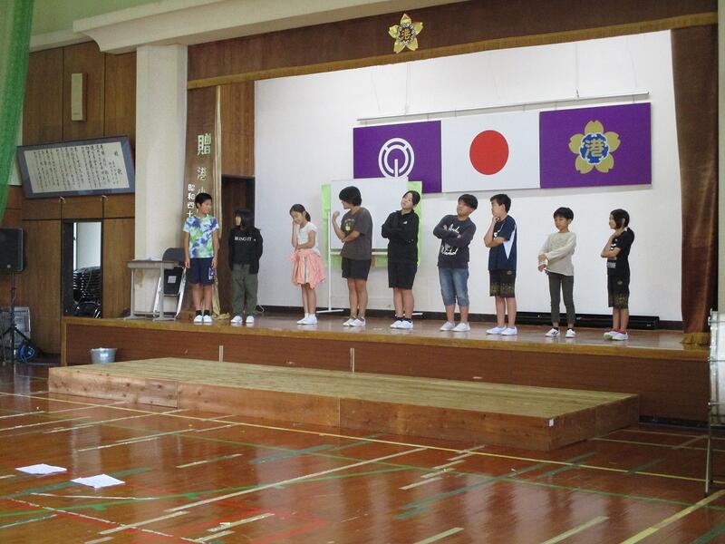 5年生は、単元『I can draw pictures well』で、自分や友達のできることやできないことについて紹介しました。6年生は、単元『My Summer Vacation』で、自分の夏休みの思い出を発表しました。過去形も使って、スピーチしました。子どもたちは、3・4年生のお友達や先生たちを前に緊張気味でしたが、しっかり英語でスピーチをすることができました。子どもたちがたくさん英語をお話ししていたので、聞いているみんなはびっくり感心していました。ぜひ、ご家庭でもスピーチしてもらってくださいね!
