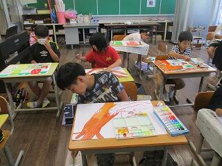 6年生です。5・6年で合同音楽をしたり、図工で筆を工夫して描いたり、水泳をしたりしました。