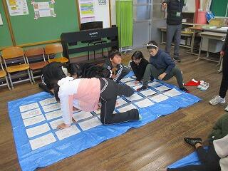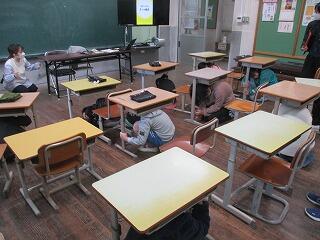 その後訓練放送を聞いて、身を守る行動、避難行動を実践しました。
