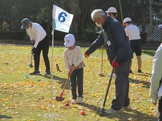 地域の方々や保護者の皆様とチームを作り、教えていただきながらのプレーでした。