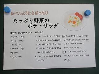 メニューは「たっぷり野菜のポテトサラダ」と「野菜のベーコン巻き」です。