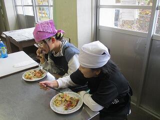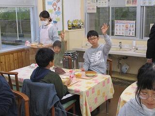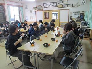 教室での学習の後、ランチルームで全員で昼食をいただきました。