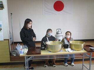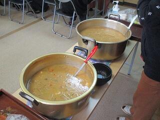 解散後は港公民館に場所を移し、親子会の皆様の豚汁の炊き出しをおいしくいただきました。