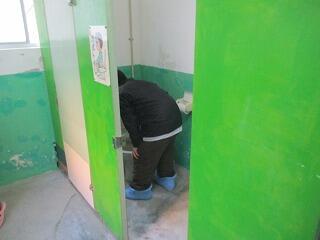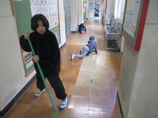 今日は雨が降っていますので、校舎内の窓ふきをしていました。