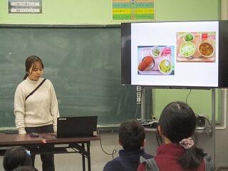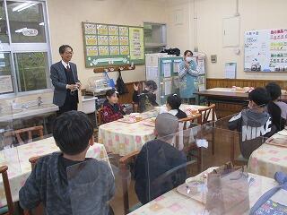 毎月19日前後に、食育の日として給食時間に先生方から食に関するお話をしていただきます。