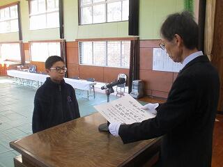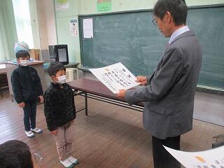 始業式終了後、各先生方から諸連絡があり、児童の表彰が行われました。