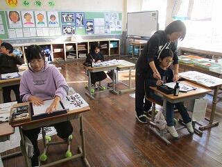 浦城小学校から5年生2名、1年生1名が交流に来てくれました。