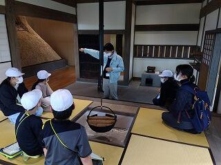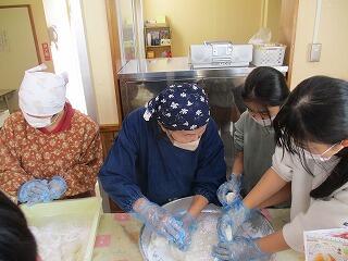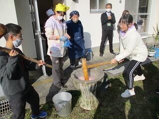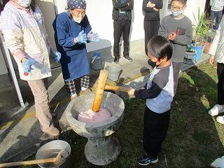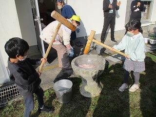 昔の道具を使ってみようということで、餅つき体験をしました。