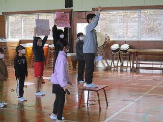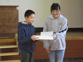 1~5年生が工夫を凝らして、コントあり、ダンスあり、歌あり、贈り物あり、ゲームありの盛りだくさんの送る会でした。