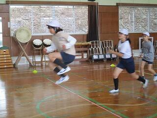 まず全校音楽で自己紹介を兼ねたゲームをしました。