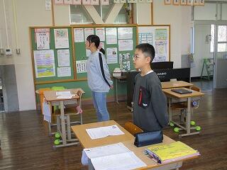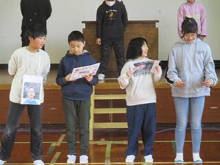 次に代表児童が3学期の抱負を発表し、全員で大きな声で校歌を歌いました。